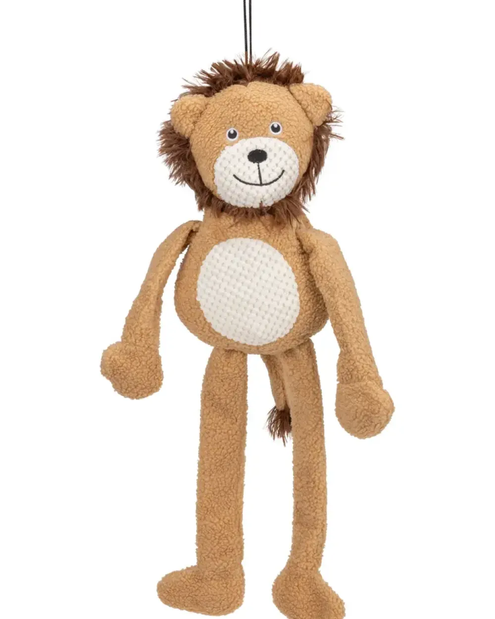 Hundelegetøjet indeholder en squeaker i jungledyrenes hænder og fødder og kan derfor lave pivelyde. Jungledyrenes ben og arme kan trækkes i og har indbyggede knitrelyde.Legetøjet fås i 3 forskellige varianter: løve, dovendyr eller panda.Variant kan ikke vælges i webshoppen.