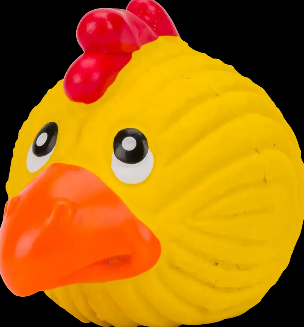 Sjovt legetøj til hunden som ligner et kyllingehoved.Bolden er lavet i latex og er lavet med pibelyd, så den også fungerer som pivedyr/pibedyr.