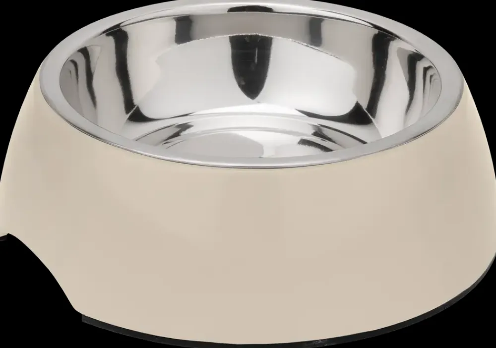 Fin foderskål udført i mælkehvid plast og rustfrit stål. Med skridsikker belægning på underkanten. Kan bruges til både hund og kat.Bemærk; der kan ikke vælges farve ved køb i Webshoppen.