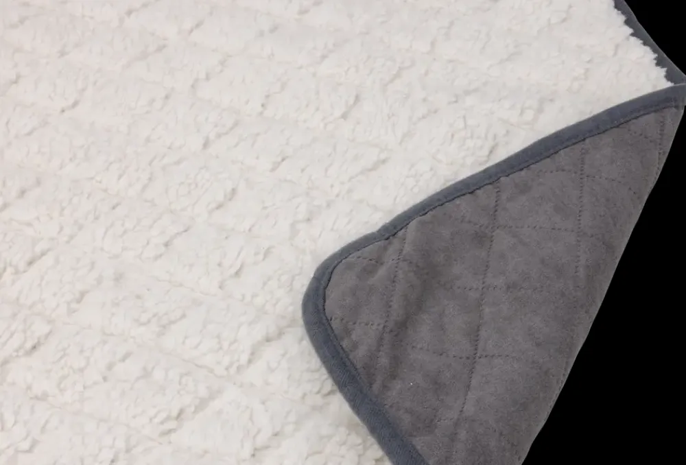 Blødt plystæppe med grå kant.Ideelt til brug i hundekurven, i bilen eller til beskyttelse af hjemmets møbler.Kan bruges som både hundetæppe og kattetæppe.