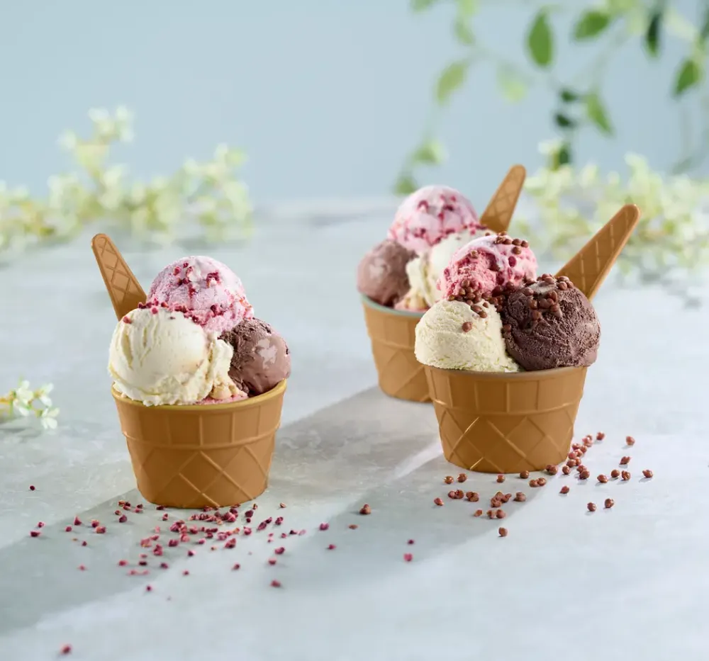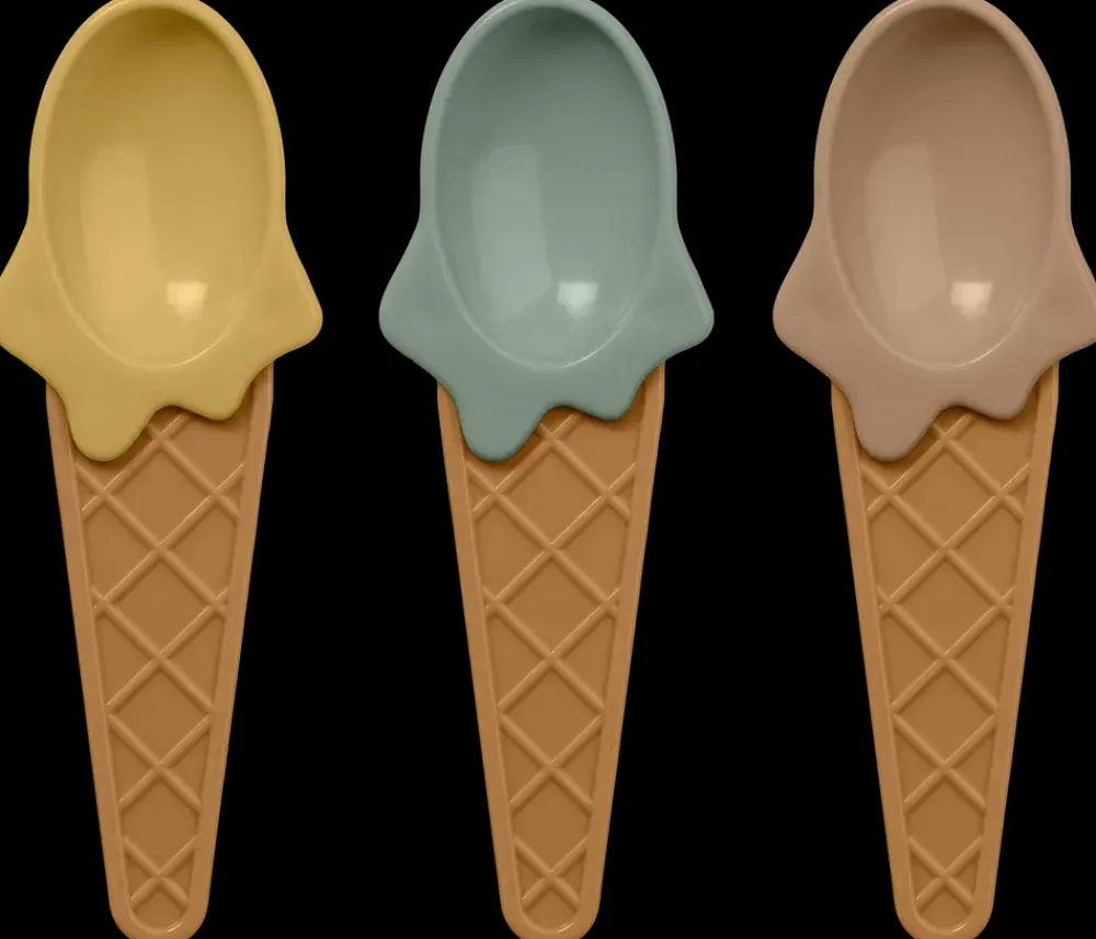 Sæt med 3 is-skåle med vaffeldesign og dertilhørende skeer.Indvendigt i skålene og spidsen af skeerne har 3 forskellige, flotte sommerfarver.Skålene og skeerne er det perfekte sæt til at servere is i på en lun sommerdag.Mål, skål: Ø9,5 x H. 6,6 cm.Mål, ske: L. 12 cm.