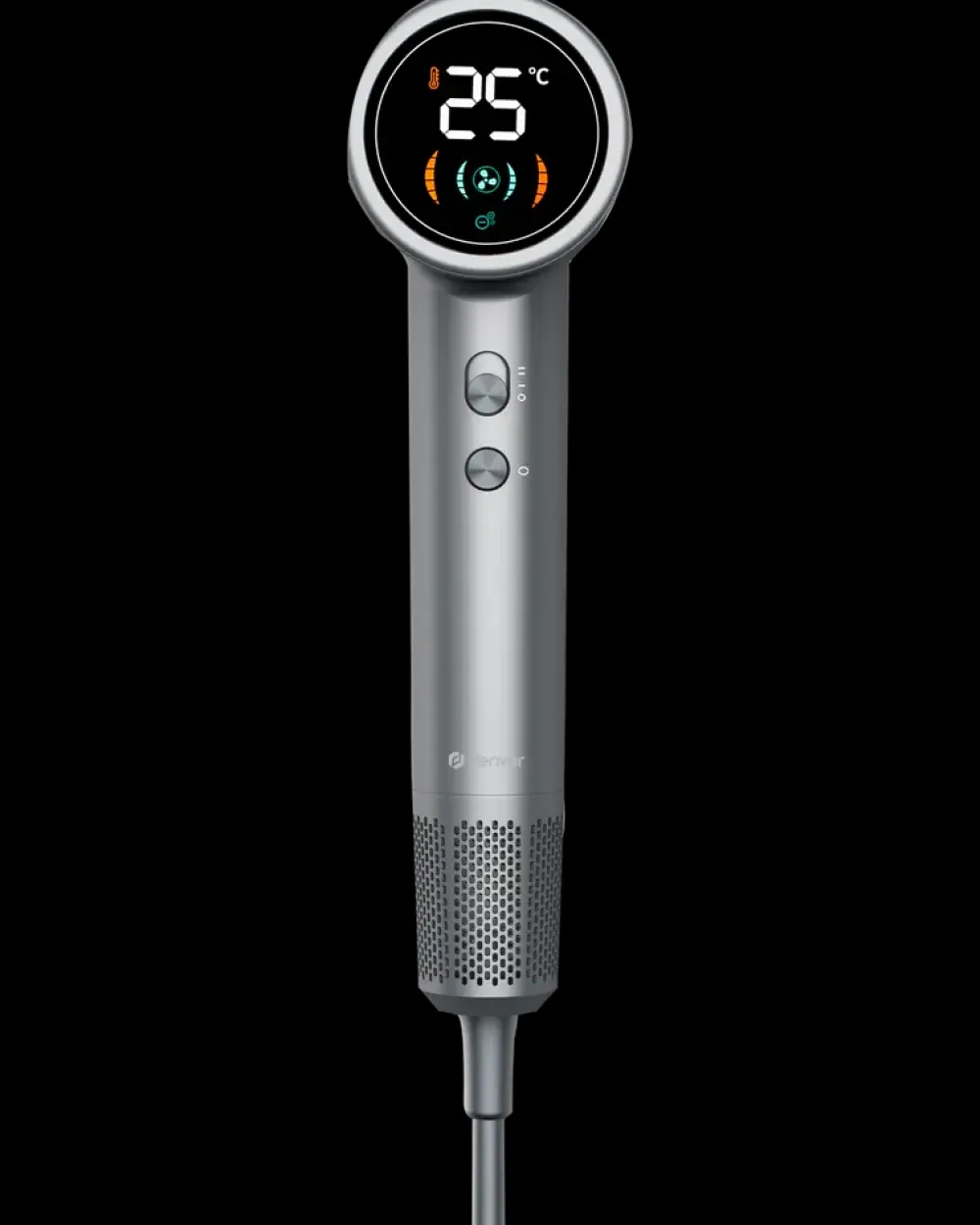 Denver HDD1400 er en moderne hårtørrer med højhastigheds børsteløs motor og LED-display. Den kraftfulde motor på 1400W sikrer en stærk luftstrøm og hurtig tørring, mens støjniveauet holdes lavt.Hårtørreren er udstyret med intelligent temperaturkontrol – indbyggede sensorer registrerer luft- og varmeforhold og justerer automatisk temperaturen for at undgå overophedning og beskytte håret mod skader.En indbygget iongenerator udsender op til 200 millioner negative ioner pr. cm³. Ionerne modvirker statisk elektricitet, reducerer krus og hjælper håret med at bevare sin naturlige fugtighed, så det fremstår mere glat og blankt.HDD1400 giver fleksibilitet i styling med 2 blæsehastigheder, 3 varmeniveauer og en aftagelig magnetisk luftdyse, der kan drejes efter behov. LED-displayet viser tydeligt temperatur og luftstrøm. Med en 1,8 meter ledning og lav vægt på ca. 500 g er hårtørreren let at håndtere.Farve: Mørkegrå