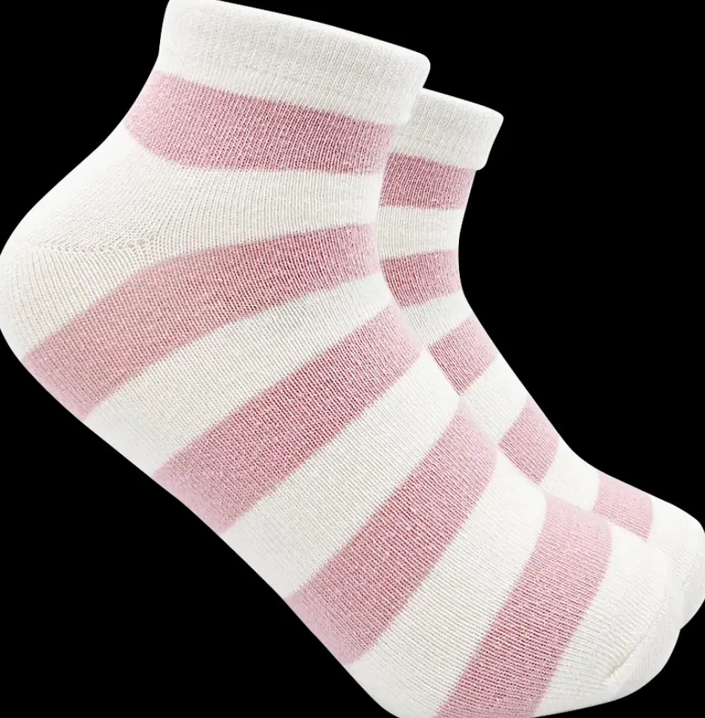 Designed FOR YOU Ankelsokker stribet – hvid og rosa| Strømper Og Arbejdsstrømper