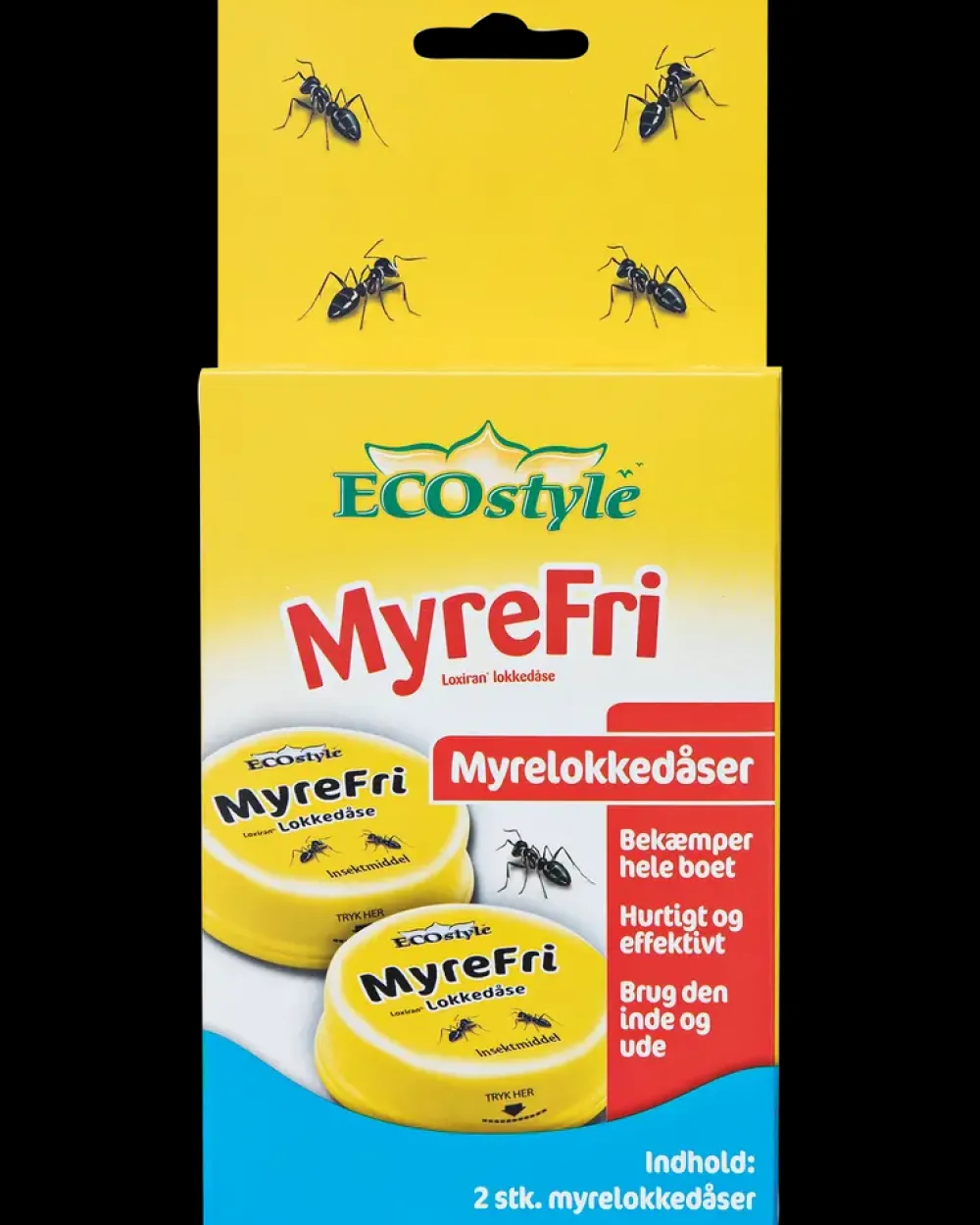 Sæt 1 myrelokkedåse tæt ved myreboet. Ved store myrebo sættes 2 myrelokkedåser. Myrerne laver et duftspor hen til myrelokkedåsen, som de andre myrer følger. Defor bør myrelokkedåsen ikke flyttes før alle myrer er væk (ca. 1 uge). Nemt og effektivt mod myrer. Anvend inde og ude. Bekæmper hele myreboet.