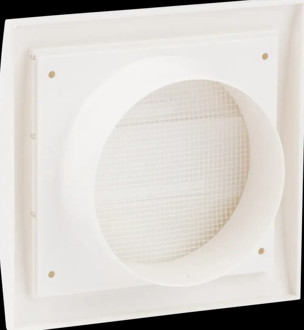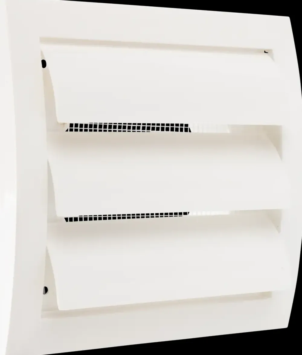 Lamelventil med insektnet og løse lameller, der automatisk åbner for indvendig luftstrøm, når der er aktivitet i ventilationssystemet. Ventilen forhindrer uønsket luftindtrængning, når ventilator, emhætte eller tørretumbler ikke er i drift.Produktet monteres udendørs og fungerer både som et dekorativt og praktisk element i ventilationsudtaget.Ventilen er fremstillet i hvid plast og måler 148 x 153 mm. Passer til ventilationskanaler med Ø100 mm.