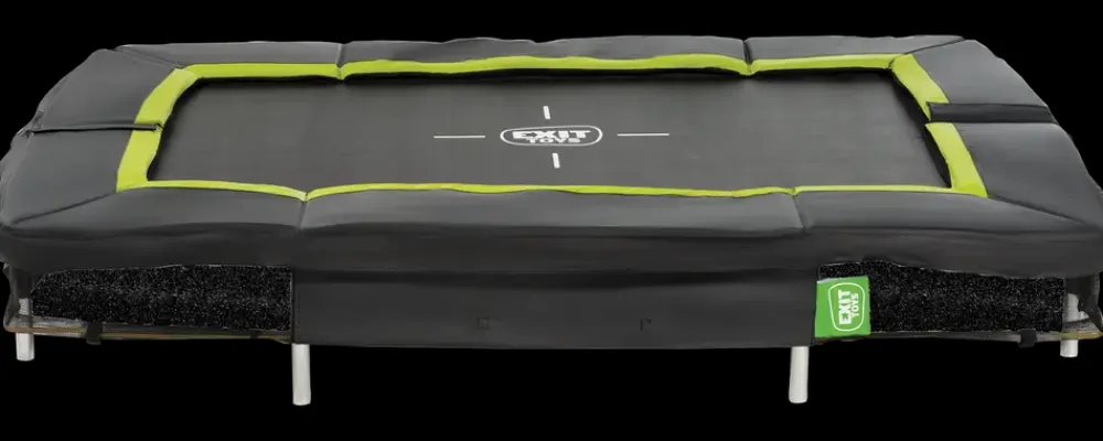 EXIT Silhouette trampolin er en solid og sikker rektangulær trampolin med sort polstring. Den installeres ved at grave et hul i jorden, så trampolinen placeres i niveau med græsset.Stabil konstruktion og høj springkraftTrampolinen har galvaniserede fjedre, der sikrer en kraftig affjedring. Kantpolstringen dækker fjedrene helt og har et fodsikkerhedssystem, der forhindrer, at fødderne kommer i klemme. Stellet er galvaniseret og pulverlakeret for at beskytte mod rust.Sikkerhed og tilbehørTrampolinen leveres uden sikkerhedsnet og anbefales derfor til erfarne brugere fra 14 år og opefter. Et sikkerhedsnet kan tilkøbes for ekstra sikkerhed.Maks. brugervægt: 100 kg.