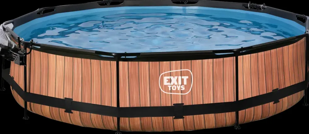 EXIT Wood poolen med Ø360 x 76 cm er en rund fritstående pool med poolskærm. Den kompakte pool indeholder en filterpumpe og skiller sig ud med sit flotte træmønster.Indersiden af poolen er blå, så den stadig har den forfriskende poolfølelse.Det pulverlakerede stålstel og de robuste hjørner på EXIT Wood poolen sikrer, at poolen altid forbliver stabil og holder i årevis.Den medfølgende pumpe frisker vandet op, og holder det i bevægelse.Med EXIT poolskærmen til pools er du ikke længere afhængig af vejrudsigten. Poolskærmen holder snavs ude af vandet og fungerer også som en bæredygtig løsning til opvarmning af vandet, da solens varme holdes under poolskærmen. Poolskærmen er let at åbne takket være sin unikke hængselmekanisme, og da den er gennemsigtig, kan du stadig holde øje med, hvad der foregår uden for poolen.Kort sagt: nyd din pool uanset vejret.Medfølger: Patronfilterpumpe, filtermateriale og poolskærm.Mål: Ø360 cm.Pooldybde: 76 cm.Ydermål: Ø380 cm.Svømmeområde: Ø340 x 70 cm.Patronfilterpumpe: 12V, 20 W, IPX5, slange Ø32 mm.Filterkapacitet: 300 gal / t (1136 liter)Leveres i 2 kasser: 119 x 36 x 32 cm (25,1 kg) og 120 x 28 x 20 cm 15,6 kg).