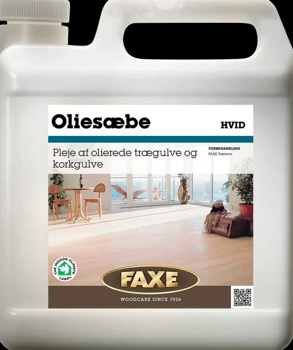 FAXE Oliesæbe Hvid anvendes til rengøring og vedligeholdelse af olierede trægulve og korkgulve. Sæben er udviklet til regelmæssig pleje, hvor den både renser og tilfører naturlige olier, der genopfrisker overfladen. Oliesæben giver træet en beskyttende og smudsafvisende film, som forlænger gulvets levetid og gør det lettere at holde rent.Produktet er baseret på forædlede planteolier og naturligt voks, som trænger ind i træets porer og beskytter mod udtørring. Den hvide variant lysner overfladen let og bevarer et lyst, ensartet udtryk. Ved gentagen brug fremhæves træets struktur og naturlige spil. FAXE Oliesæbe Hvid kan anvendes ufortyndet til stærkt tilsmudsede områder eller fortyndes med vand til almindelig gulvvask.Velegnet til lyse træsorter som eg, ask og fyr samt korkgulve. Efterlader ingen fedtet overflade og giver et jævnt, mat resultat med en let hvidpigmenteret tone.Indhold: 2,5 literType: Oliesæbe – HvidAnvendelsesområde: Olierede træ- og korkgulveSammensætning: Forædlede planteolier og naturligt voksRækkeevne: Ca. 50–100 m² pr. liter afhængigt af fortyndingFarve: Hvid