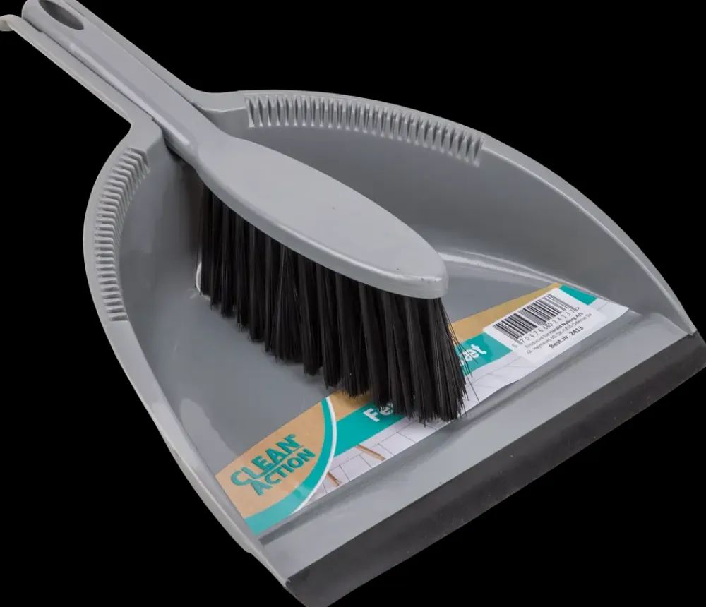 Klassisk fejebakkesæt fra Clean Action®. Fejebakken er udstyret med en gummikant, der gør det lettere at få skidtet fejet op på bladet. Kosten kan klikkes fast i fejebakkens håndtag for nem opbevaring, når sættet ikke er i brug.Farve: Assorteret.Bemærk, at der ikke kan vælges farve ved køb i webshoppen.