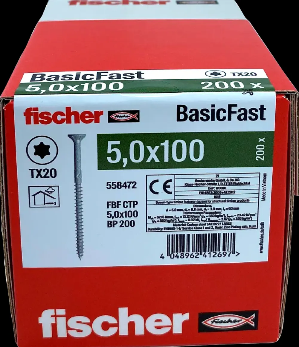 BasicFast spånskrue i ruspert med undersænket hoved fra Fischer.Skurerne er med TX kærv og delgevind.Skruen er C3 klasse, som gør den kan klare de fleste opgaver både inden- og udendørs.Korrosionsklasse: C3.Skruehoved: Undersænket.Gevind: Delgevind.