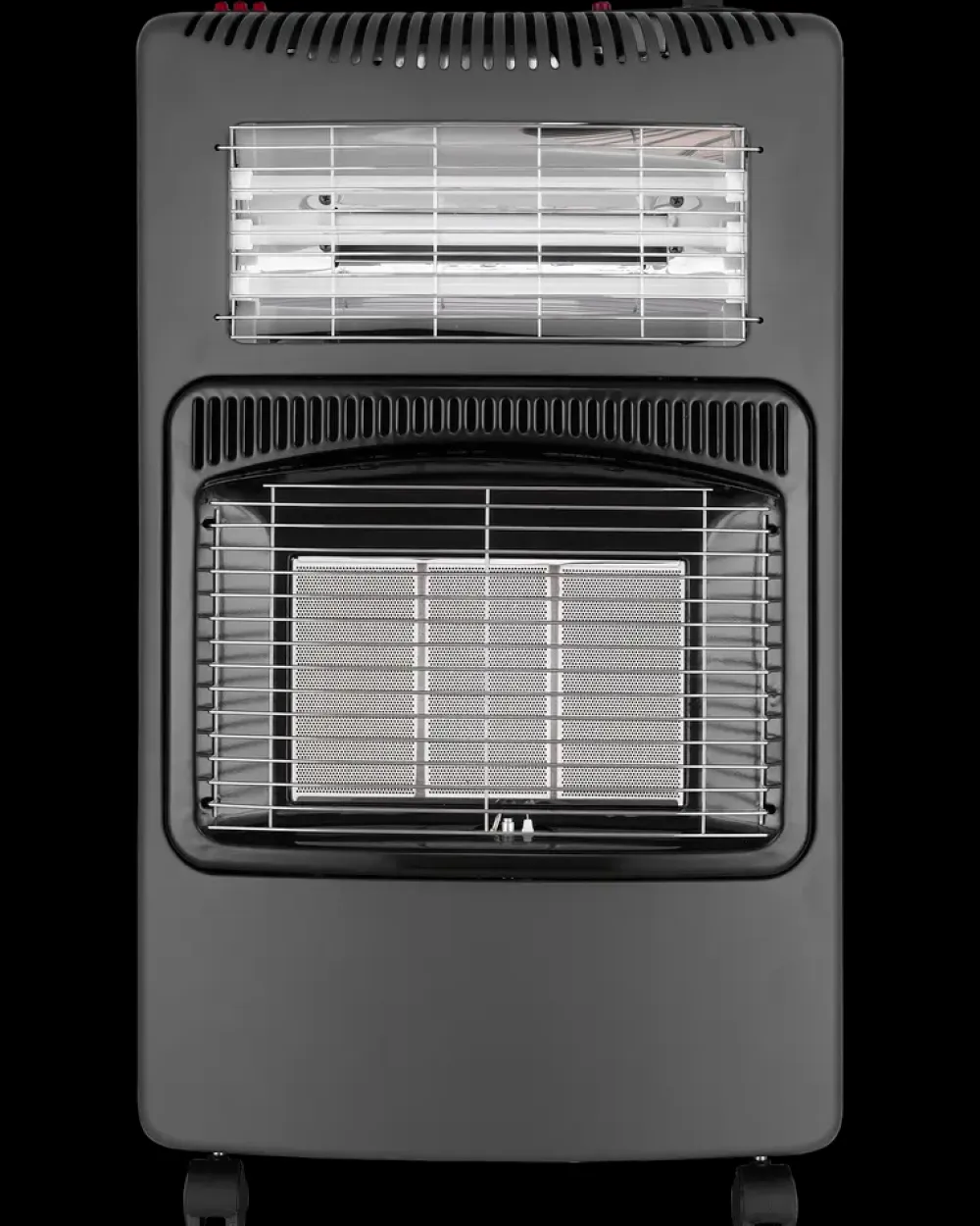 Kombineret gas- og elvarmeovn med 2-i-1 varmesystem, der giver fleksibel opvarmning i godt ventilerede rum. Ovnen kan anvendes med gas, el eller begge varmekilder samtidigt og egner sig som supplerende varme i f.eks. garage, værksted eller udestue.Sikkerheden er i højsædet: Ovnen er udstyret med en ODS-ventil (iltsvindssensor), som automatisk slukker for gasforsyningen ved lav iltmætning i rummet. Dertil kommer FFD-systemet, der lukker for gassen, hvis flammen skulle gå ud. En væltesikring sørger for automatisk afbrydelse, hvis ovnen bliver væltet. Disse tre sikkerhedsfunktioner gør brugen både tryg og pålidelig.Ovnen har tre gasvarmetrin (1,5 / 2,8 / 4,2 kW) og tre elektriske varmetrin (400 / 800 / 1200 W). Den betjenes nemt via Piezo-tænding og separat elektrisk kontrolpanel. Den foldbare konstruktion gør det muligt at klappe ovnen sammen og opbevare den pladsbesparende, når den ikke er i brug. Leveres komplet med 0,5 m gasslange, regulator og fire hjul for nem transport. Plads til gasflaske på op til 13 kg.Gasforbrug pr. time:Min. effekt (1,5 kW): ca. 110 g/timeMiddel effekt (2,9 kW): ca. 210 g/timeMaks. effekt (4,2 kW): ca. 305 g/timeMå kun anvendes i godt ventilerede rum. Produktet er ikke egnet som primær varmekilde.