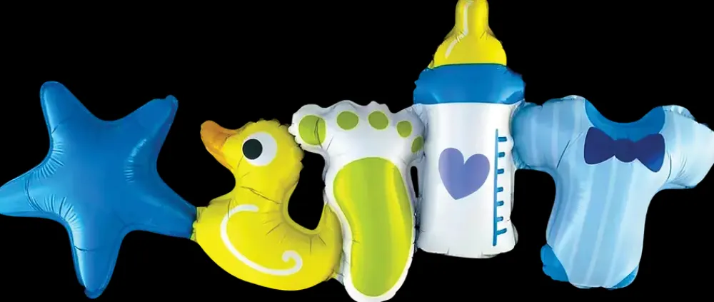 Skab en festlig atmosfære til dåbsfesten med denne folieballonguirlande. Guirlanden består af 5 sammenhængende balloner i forskellige farver og mønstre. Den leveres med et praktisk pusterør, der gør det nemt at puste ballonerne op.Er ikke egnet til helium.