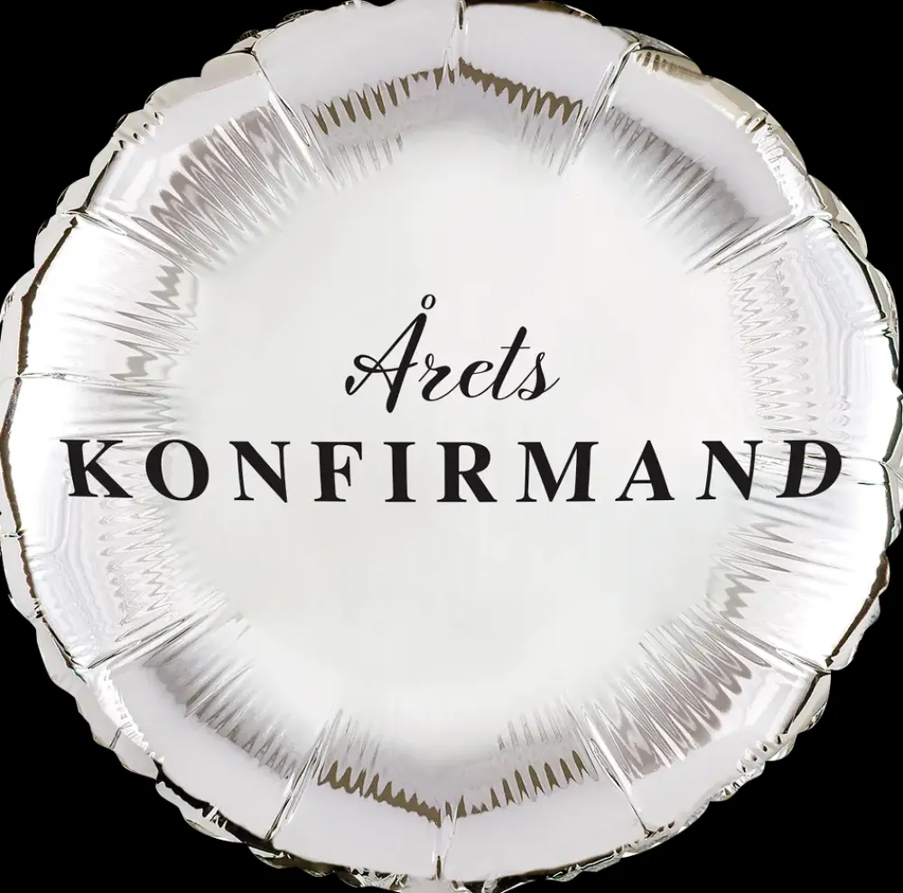 Folieballon i rund model med skriften “Årets konfirmand”. Ballonen er ideel som pynt til konfirmationsfesten og kan fyldes med helium, så den svæver, eller med luft til ophæng eller dekoration på væg og bord.Den hvide farve kombineret med sort tekst giver et tydeligt og enkelt udtryk, der passer til festens tema. Ballonen er velegnet som blikfang ved gavebord, indgang eller festlokale.Egnet til helium