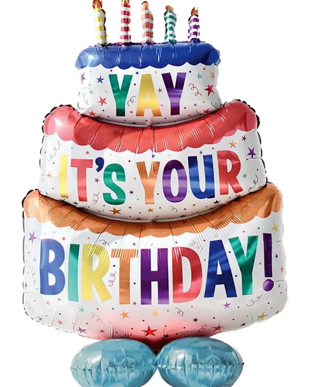 Folieballon på fod 77 cm – Fødselsdagskage| Festartikler