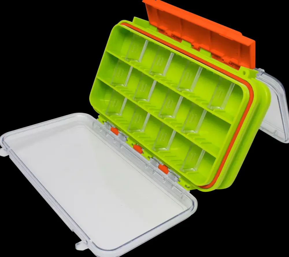 Omura grejboks nr. 2 med højkvalitetslåse og 2 separate rum.Grejboksen er vendbar og med klart låg så man se ned i den.Boksen har aftagelige skillevægge og er perfekt til blink, spinner, små wobler, kroge og diverse småting.Boksen er vand- og fugtafvisende og har den perfekte størrelse til jakken eller waders.