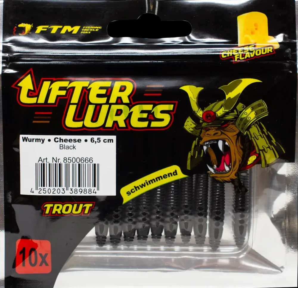 Lifter Lures Wurmy Cheese er et effektivt gummiagn til put and take-fiskeri.Den unikke ostearoma lokker ørreder og øger chancerne for fangst markant. Med en længde på 6,5 cm og en flydende egenskab kan Wurmy nemt fiskes med et bombarda-flåd eller frit i vandet. Det fleksible design skaber realistiske bevægelser og gør den synlig for fisk i alle vandlag. Perfekt til danske ørredvande og leveres i en pakke med 10 stk.