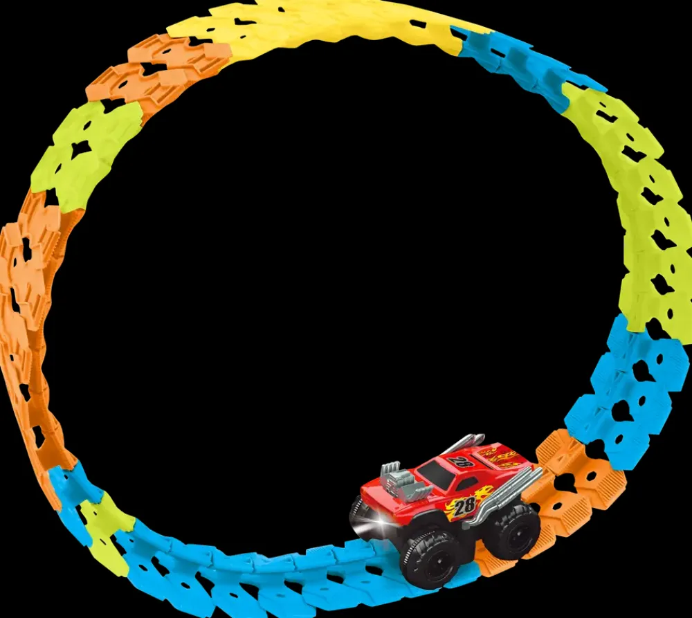 Byggesæt til fleksibel racerbane, der giver mulighed for varieret leg og kreativ opbygning. Sættet indeholder 144 farvede dele i blød plast, som kan samles til cirkler, loops eller lige strækninger. De enkelte sektioner klikkes nemt sammen, så børn selv kan samle og ændre banens forløb.Den medfølgende batteridrevne bil lyser under kørsel og følger automatisk sporet, uanset hvordan banen er bygget. Systemet understøtter både kreativ leg og finmotorisk træning.Alle dele er fremstillet i slidstærkt PP-materiale og er nemme at tage fra hinanden og samle igen. Sættet indeholder dele i gul, grøn, blå og orange samt en rød bil med sorte hjul.Antal dele: 144Inkl. 1 stk. batteridrevet bil (kræver 3 x AAA-batterier – medfølger ikke)Materiale: PPFarver: gul, grøn, blå, orange, rød, sort