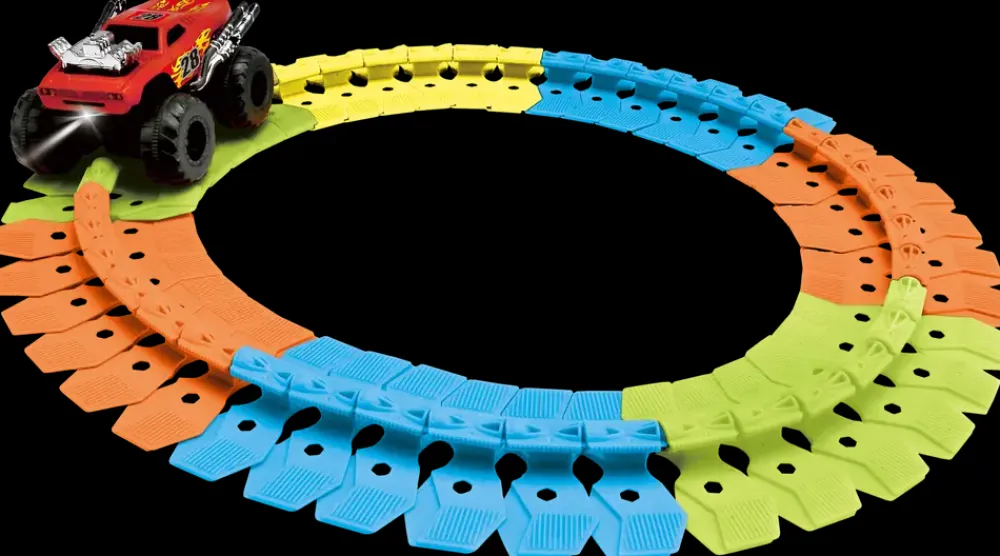 Byggesæt til fleksibel racerbane, der giver mulighed for varieret leg og kreativ opbygning. Sættet indeholder 96 farvede dele i blød plast, som kan samles til cirkler, loops eller lige strækninger. De enkelte sektioner klikkes nemt sammen, så børn selv kan samle og ændre banens forløb.Den medfølgende batteridrevne bil lyser under kørsel og følger automatisk sporet, uanset hvordan banen er bygget. Systemet understøtter både kreativ leg og finmotorisk træning.Alle dele er fremstillet i slidstærkt PP-materiale og er nemme at tage fra hinanden og samle igen. Sættet indeholder dele i gul, grøn, blå og orange samt en rød bil med sorte hjul.Antal dele: 96Inkl. 1 stk. batteridrevet bil (kræver 3 x AAA-batterier – medfølger ikke)Materiale: PPFarver: gul, grøn, blå, orange, rød, sort