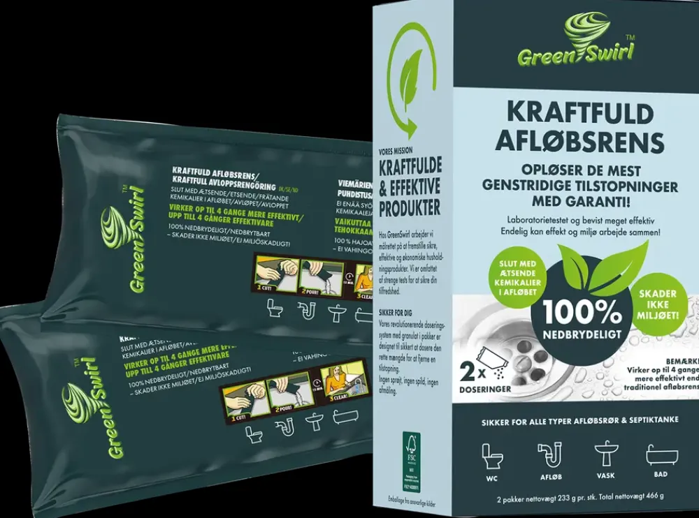 Green swirl Afløbsrens 2 poser| Rengøringsmidler