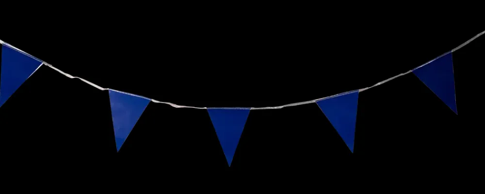 Guirlande med vimpler, 4 meter i blå.12 vimpler på 19 x 14 cm.