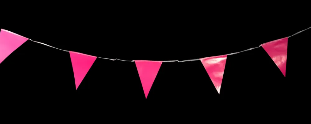 Guirlande med vimpler, 4 meter i fuchsia farve.12 vimpler på 19 x 14 cm.