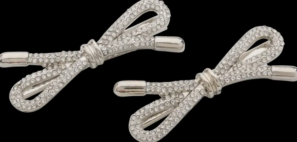 Hårspænde sløjfe og sten 2 stk. – sølv| Smykker & Hårpynt