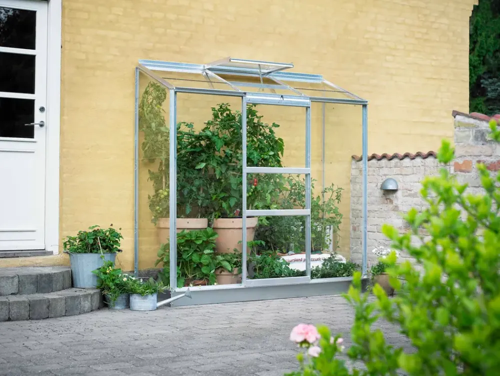 Til montering på væg. Flot og funktionelt i høj kvalitet med gode muligheder for at udnytte altanen eller en mindre plads på terrassen og få skabt en grøn oase med egne tomater, agurker og andet godt.Med huset får du en letløbende skydedør og vindue til effektiv ventilation. Glas monteres nemt med klips og glassnor. Glasset er ikke i hele baner.Sidehøjde: 1,53 m.Dørbredde: 61 cm.Antal vinduer: 1 stk.Højde angivet er med fundament på 12 cm. Fundament skal tilkøbes.