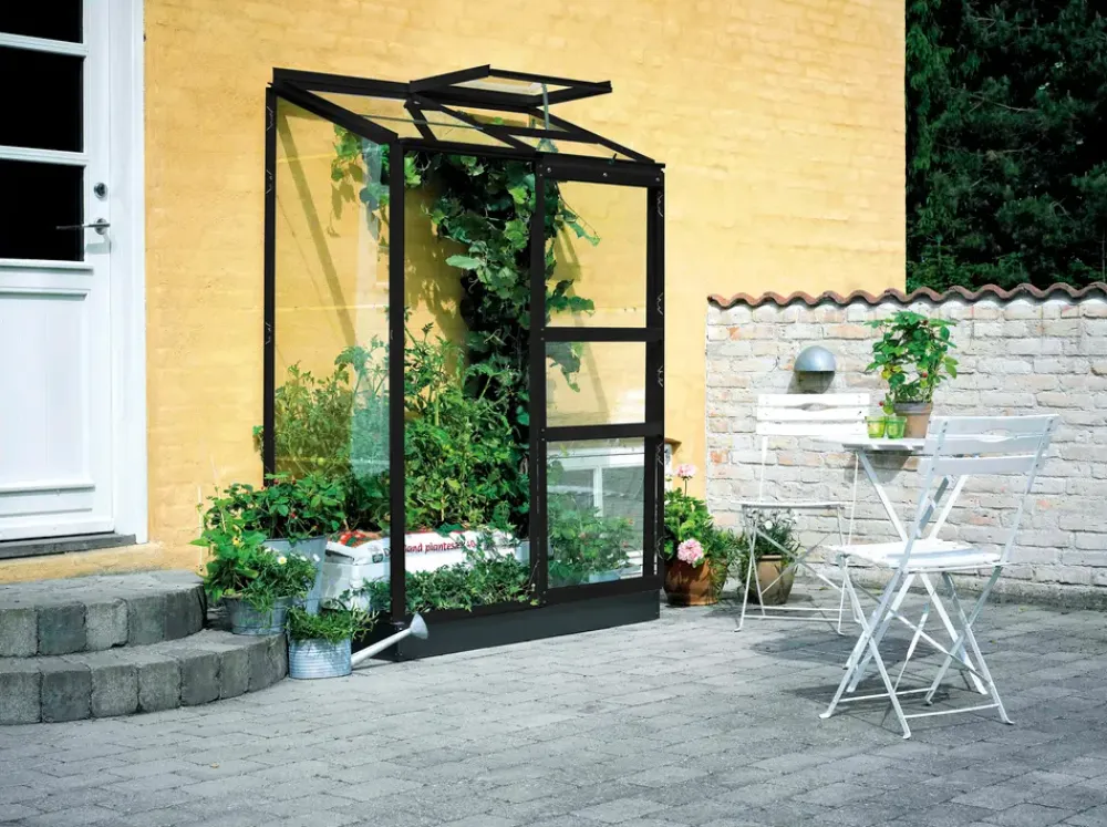 Halls Vægdrivhus Altan 2 sort med 3 mm glas| Vægdrivhuse