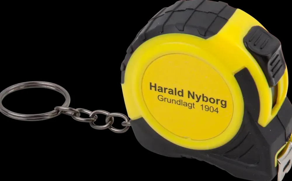Harald Nyborg målebånd med fast stop og nøglering.