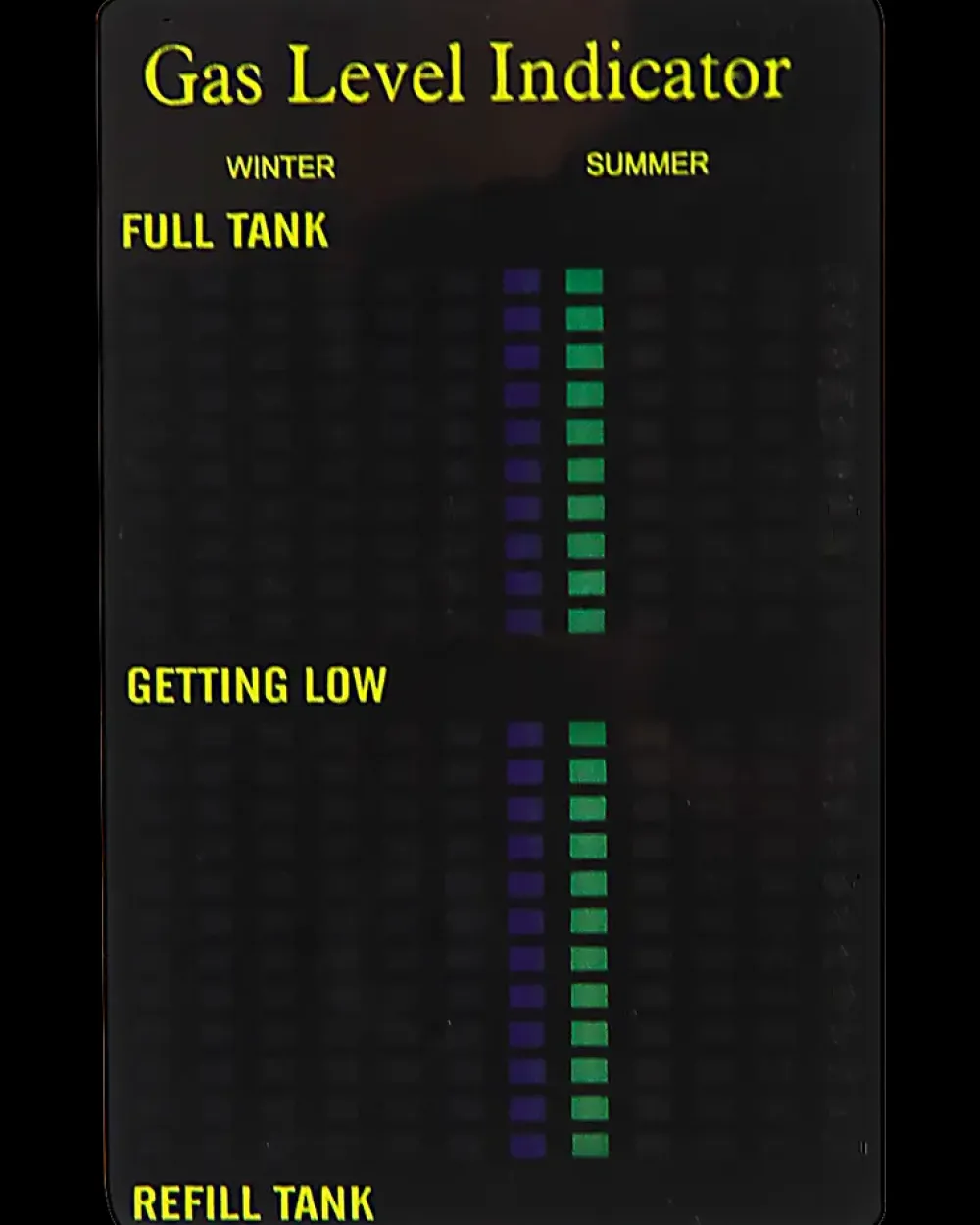 Gaslevel-indikator, der fortæller dig hvornår din gasflaske er ved at løbe tør.Kan bruges på alle gasflasker.