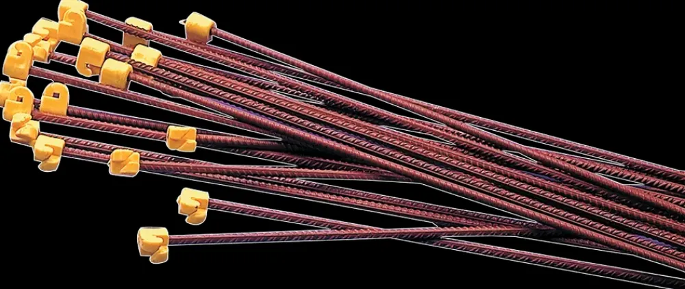 Et bundt med 10 stk. røde tentor-hegnspæle. Med gul, slagfast isolator med krog, hvor tråden nemt trækkes igennem. 8 mm. armeringsstål.