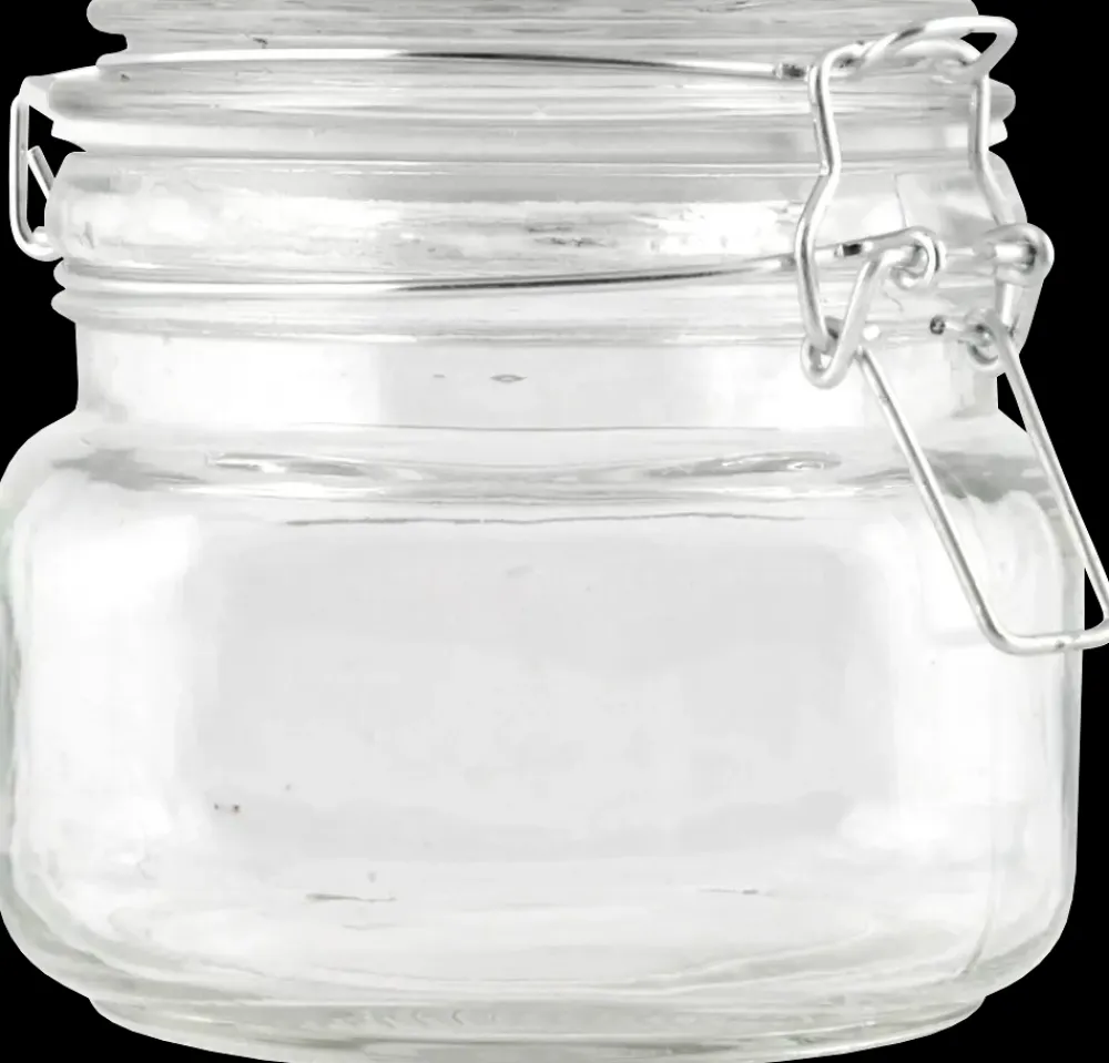 Henkogningsglas med hængslet låg i rustfrit stål og med silikonepakning.Kan bruges til f.eks. syltetøj, gelé og syltede frugter.Minimere lækage og modvirker luftcirkulation og holder derved maden frisk i længere tid.Skal glasset steriliseres med kogende vand, skal det først forvarmes med varmt vand fra vandhanen, for at forhindre at glasses revner.