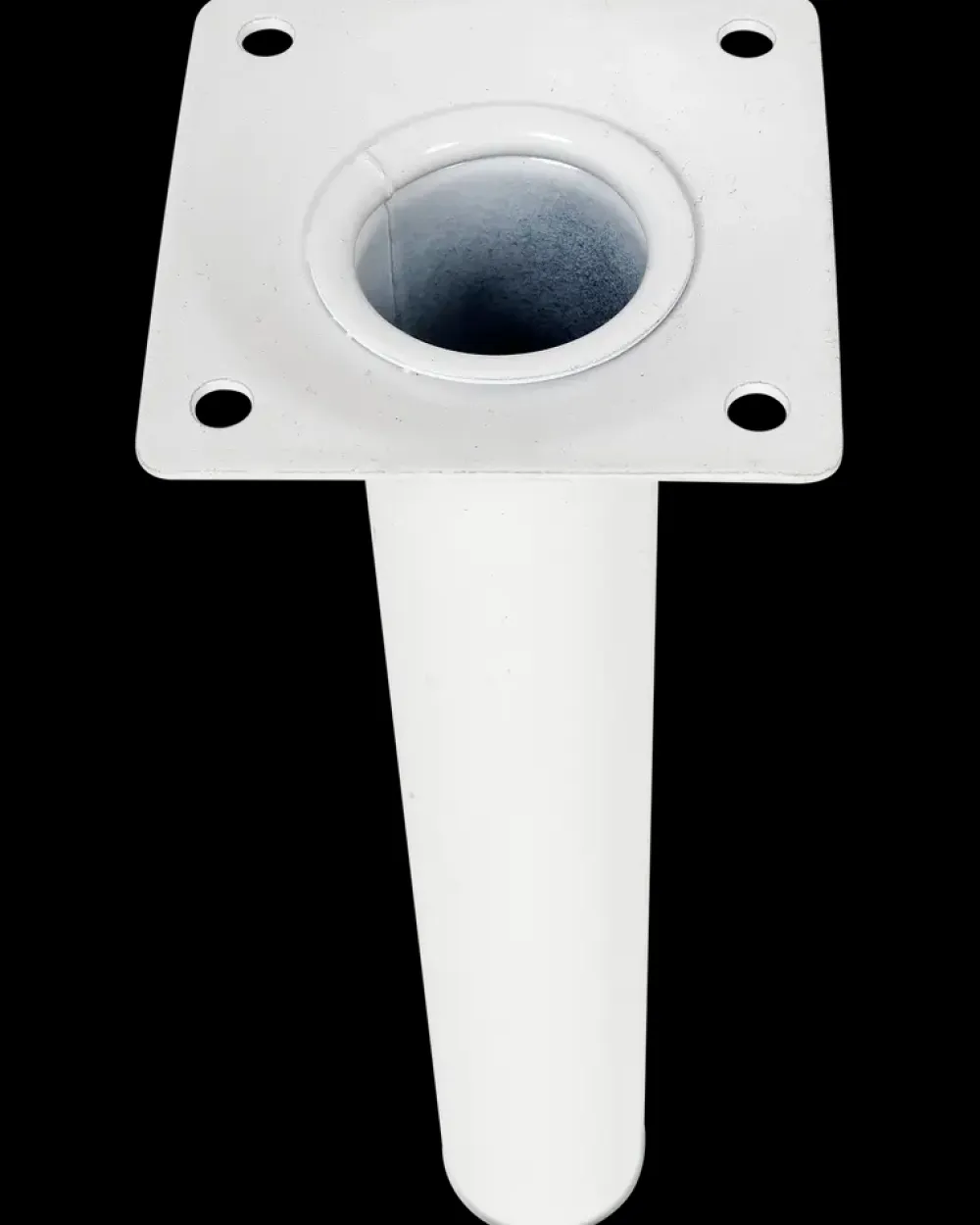 Home>it møbelben i stål til montering på forskellige typer borde og møbler. Benet monteres under bordpladen via en firkantet flange med fire skruehuller.Den runde rørkonstruktion giver stabil støtte. I bunden sidder en dupsko med M10 gevind, som gør det muligt at montere stilleskrue eller hjul.Der kan tilkøbes stilleskruer i to størrelser: 15–30 mm eller 30–115 mm, som passer til gevindet i bordbenet. Der kan også tilkøbes hjul med eller uden bremse, som passer til samme gevind.Overfladen er pulverlakeret.Tekniske detaljer og målLængde: 20 cmRørdimension: Ø30 mmFlangemål: 6 x 6 cmGevind i dupsko: M10Maks. belastning: ca. 200 kgMateriale: StålFarve: Hvid