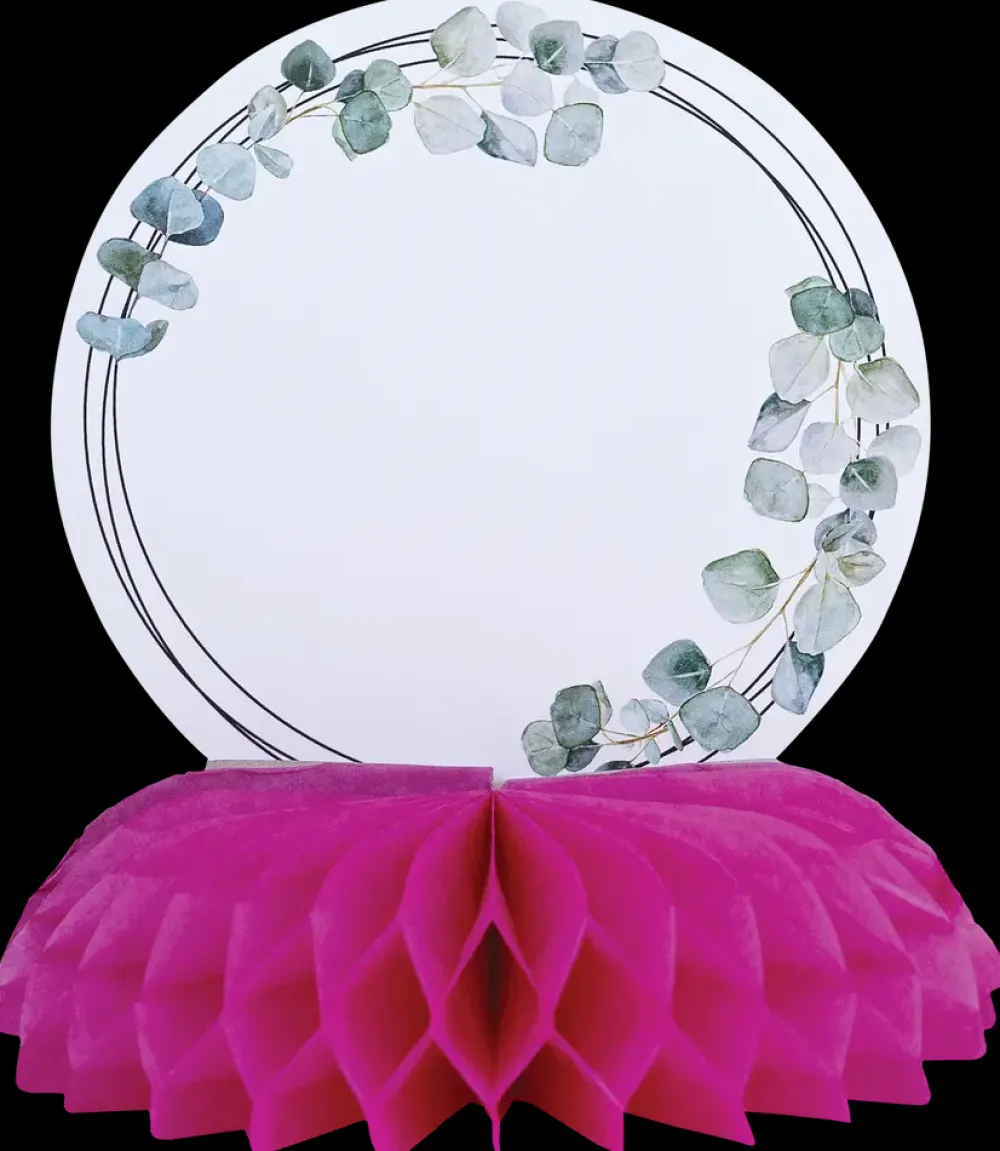Honeycomb med skilt Ø15 cm, i Fuchsia farve.Skilt til at skrive på, sættes i midten af honeycomb.