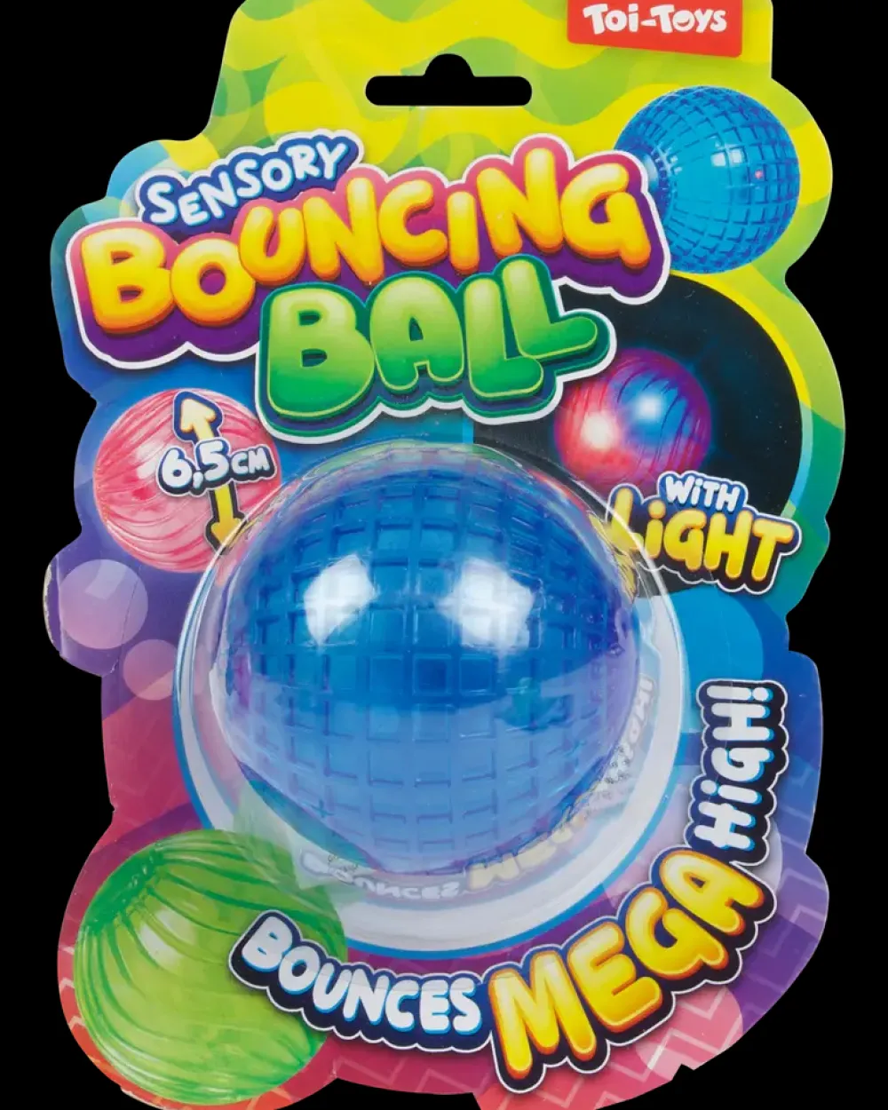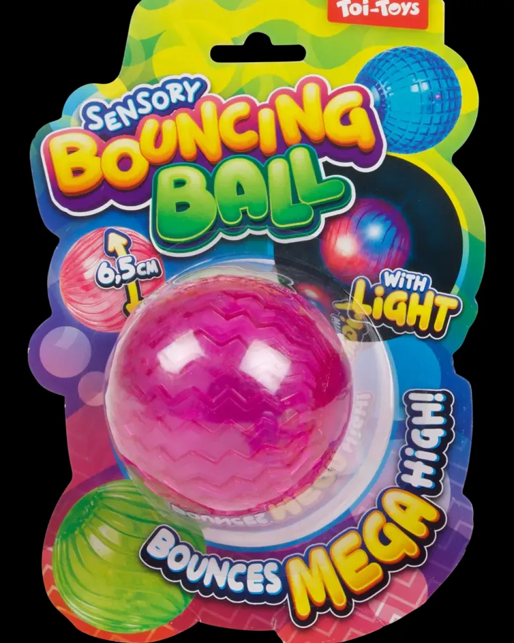 Hoppebold med lyseffekter, der aktiveres ved bevægelse. Fremstillet i transparent plast med en diameter på ca. 6,5 cm. Overfladen har varierende 3D-strukturer, som giver et sansestimulerende indtryk.Bolden lyser op ved sammenstød og kan bruges både inde og ude. Den høje elasticitet giver en kraftig hoppeeffekt, som gør legen mere underholdende. Egnet til børn, der ønsker en aktiv og sansende leg.Fås i pink, lilla, blå og grøn – hver med sit eget mønster.Farve kan ikke vælges ved køb i webshoppen.