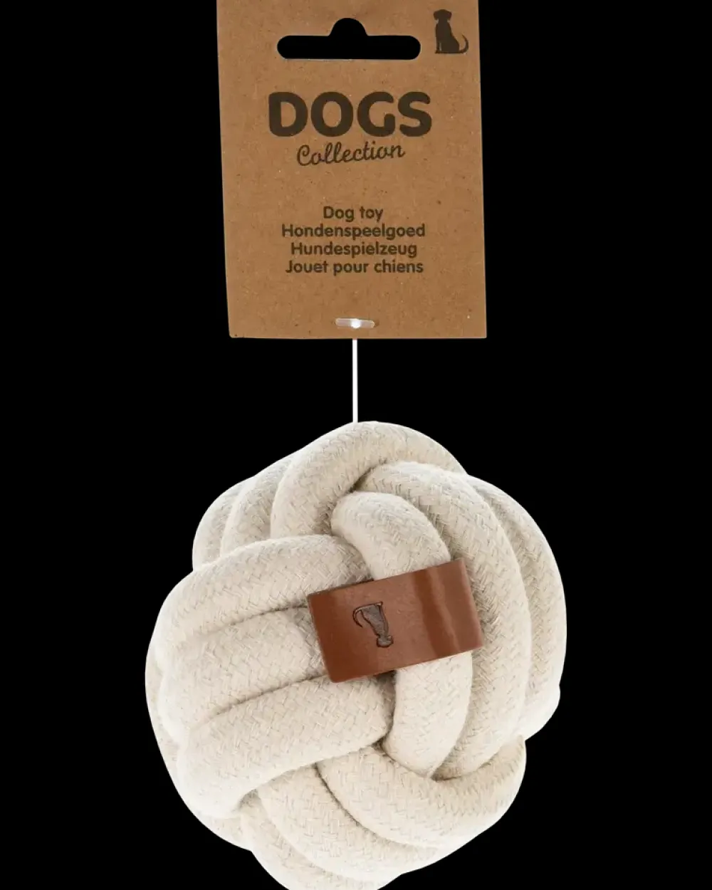 Godt hundelegetøj til både at blive kastet med, samt at gnave i.Tovbolden er i hvidt design med brunt lædermærke.