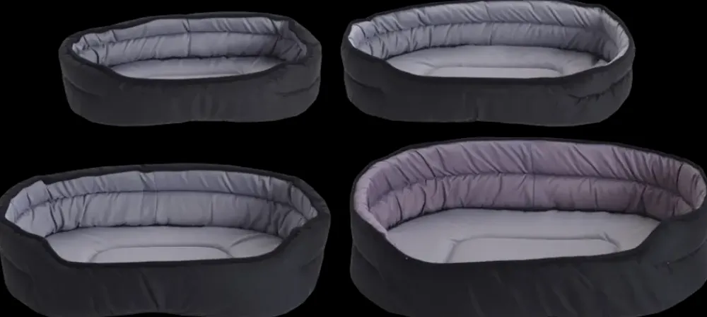 Sæt med 4 hundesenge i forskellige størrelser, velegnet til både hvalpe og voksne hunde. Sengene giver hunden et fast og polstret liggeunderlag og kan anvendes i stue, bryggers eller hundekurv.Hver seng er fremstillet i polyester med skumfyld og har blød plys på overfladen. Den forhøjede kant giver støtte omkring kroppen, mens den polstrede bund bidrager til en jævn liggeflade. Ydersiden er mørkegrå, og indersiden er lysegrå.Sættet indeholder fire størrelser, så der kan vælges efter hundens behov.Tekniske detaljer og mål:XL: H. 13 x B. 40 x L. 52,5 cmL: H. 12 x B. 34 x L. 48,5 cmM: H. 10 x B. 29,5 x L. 43 cmS: H. 9 x B. 22 x L. 38 cmMateriale: Polyester og skum med plysFarve: Mørkegrå udvendigt, lysegrå indvendigt