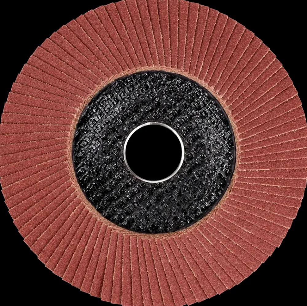 Flapdisc til brug med vinkelsliber. Med rektangulære, overlappende fleecelameller, der er limet fast på støtteplade af glasfiber. Til effektiv rensning og polering af metal, forberedelse og efterbehandling af svejsesømme og lakoverflader samt polering af rustfrit stål.