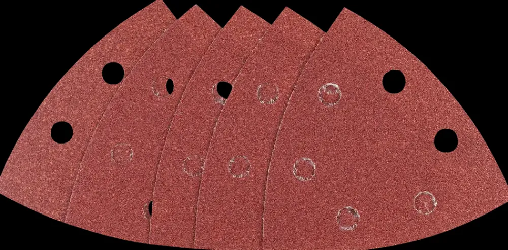 Slibepapir til trekantslibere. Velegnet til slibning af træ.Sandpapiret har en velcro-bagside, så det er nemt at fastgøre til trekantsliberen. Slibepapiret er forsynet med 6 huller, der effektivt leder støv væk fra værktøjet.