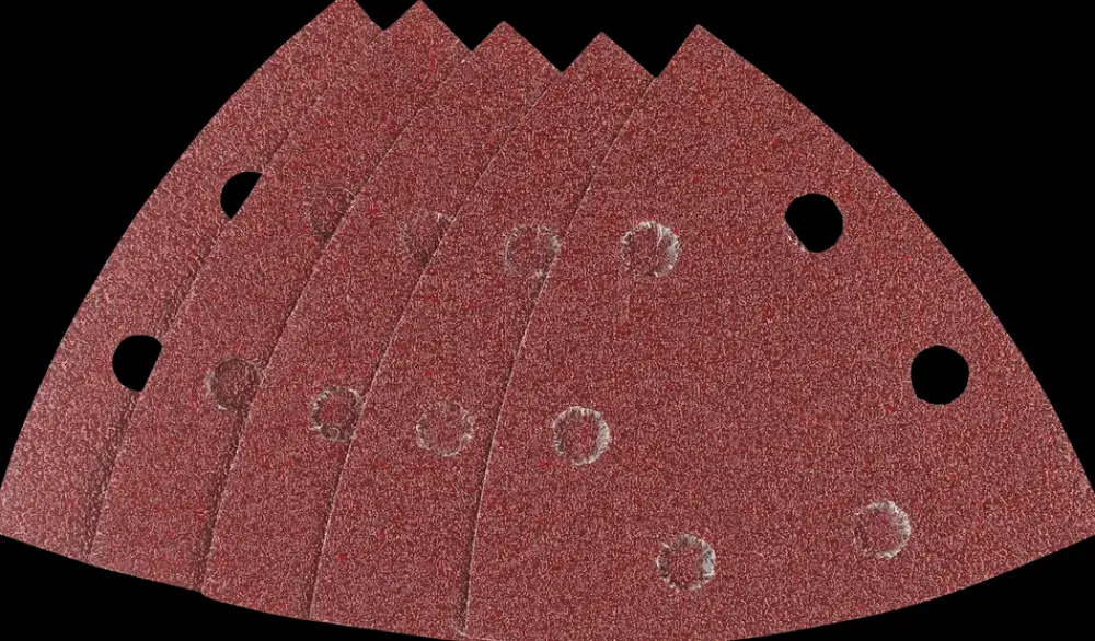 Slibepapir til trekantslibere. Velegnet til slibning af træ.Sandpapiret har en velcro-bagside, så det er nemt at fastgøre til trekantsliberen. Slibepapiret er forsynet med 6 huller, der effektivt leder støv væk fra værktøjet.