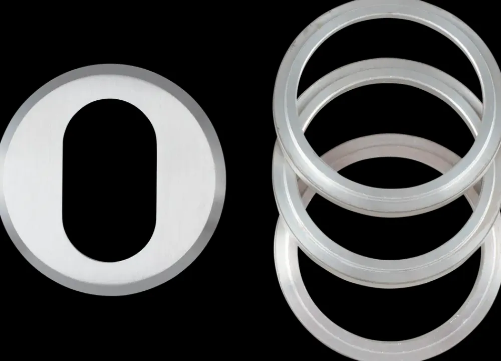 Universal cylinderring oval.Til udvendig brug.Cylinderingen kan justeres i afstand fra 6 til 21 mm med de medfølgende ringe.Inkl. skruer og bøsninger til montering.Centerafstand: 30 mm.Overflade: Børstet-look.Materiale: Rustfrit stål.