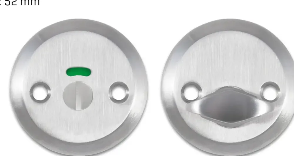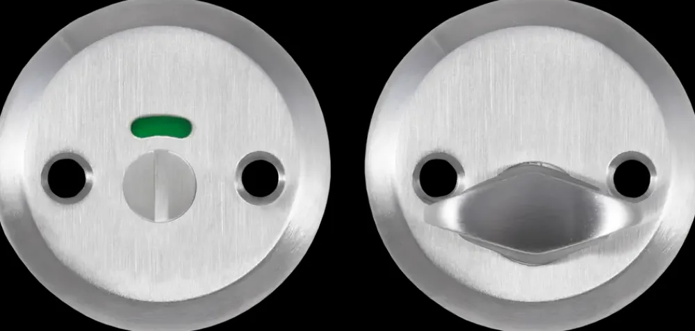 Konisk toiletbesætning med børstet overflade til modul/mellemdør.Med harlekinvrider og rød/grøn-markering, der gør det nemt at identificere, om toiletdøren er låst eller ledigt.Inkl. skruer og bøsninger til montering.6 mm konisk vridergreb.Centerafstand: 27/30 mm.Overflade: Børstet-look.Materiale: Rustfrit stål.