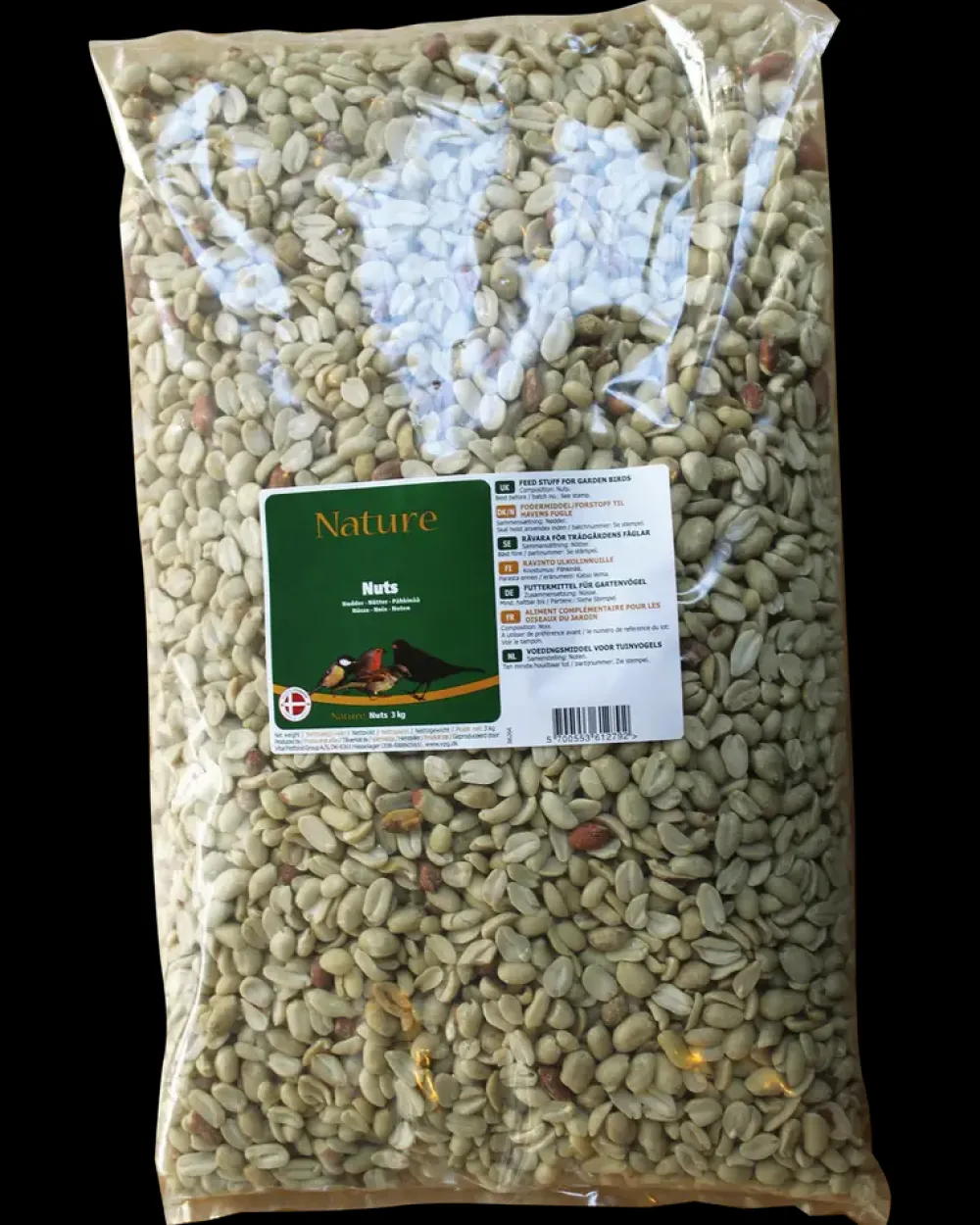 Jordnødder er bløde og olieholdige. Disse jordnødder har det rette forhold mellem olie og protein. Jordnødder er mange fugles livret og kan også tiltrække mere sjældne fugle som spætter og spætmejser.Jordnødderne er særligt udvalgte kvalitetsnødder, som bidrager til et rigt og varieret fugleliv i haven. Fuglefrø-serien består i sin helhed af et varieret produktsortiment. For at tiltrække flest forskellige arter anbefaler vi, at fodringen omfatter forskellige frø- og nøddeprodukter.Vi anbefaler, at du fodrer i en jordnøddefoderautomat hele året rundt. Vi fraråder fodring på foderbræt, da nødderne kan risikere at kvæle fuglen.