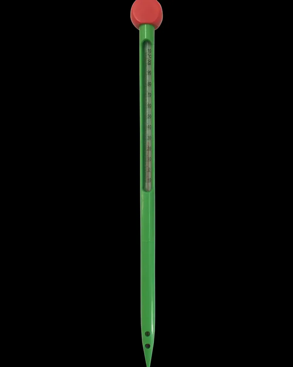 Til brug i drivhus og have. Dette jordtermometer viser temperaturen i jorden. Man kan finde ud af, hvornår jorden er varm nok, til at foretage en udplantning.