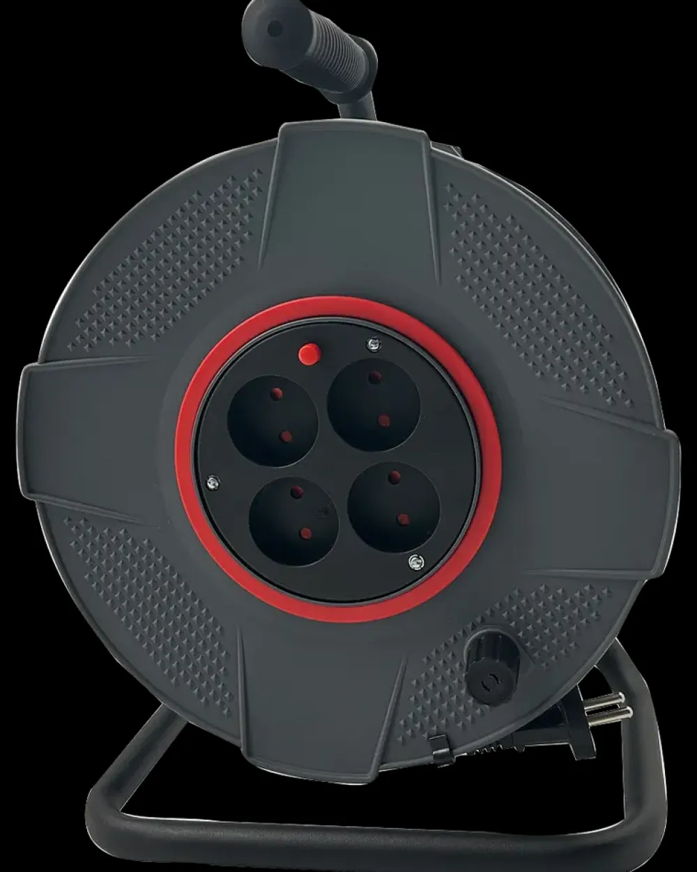 Kabeltromle med 40 meter 2 x 1 mm² kabel. Har 4 udtag uden jord samt termosikring, der beskytter mod overbelastning. Med solidt bærehåndtag og fod for nem transport og stabilt brug.Maks. belastning: 1000W oprullet og 2300W udrullet ved 230 V. Uden jordforbindelse – bedst egnet til indendørs brug og mindre krævende apparater.