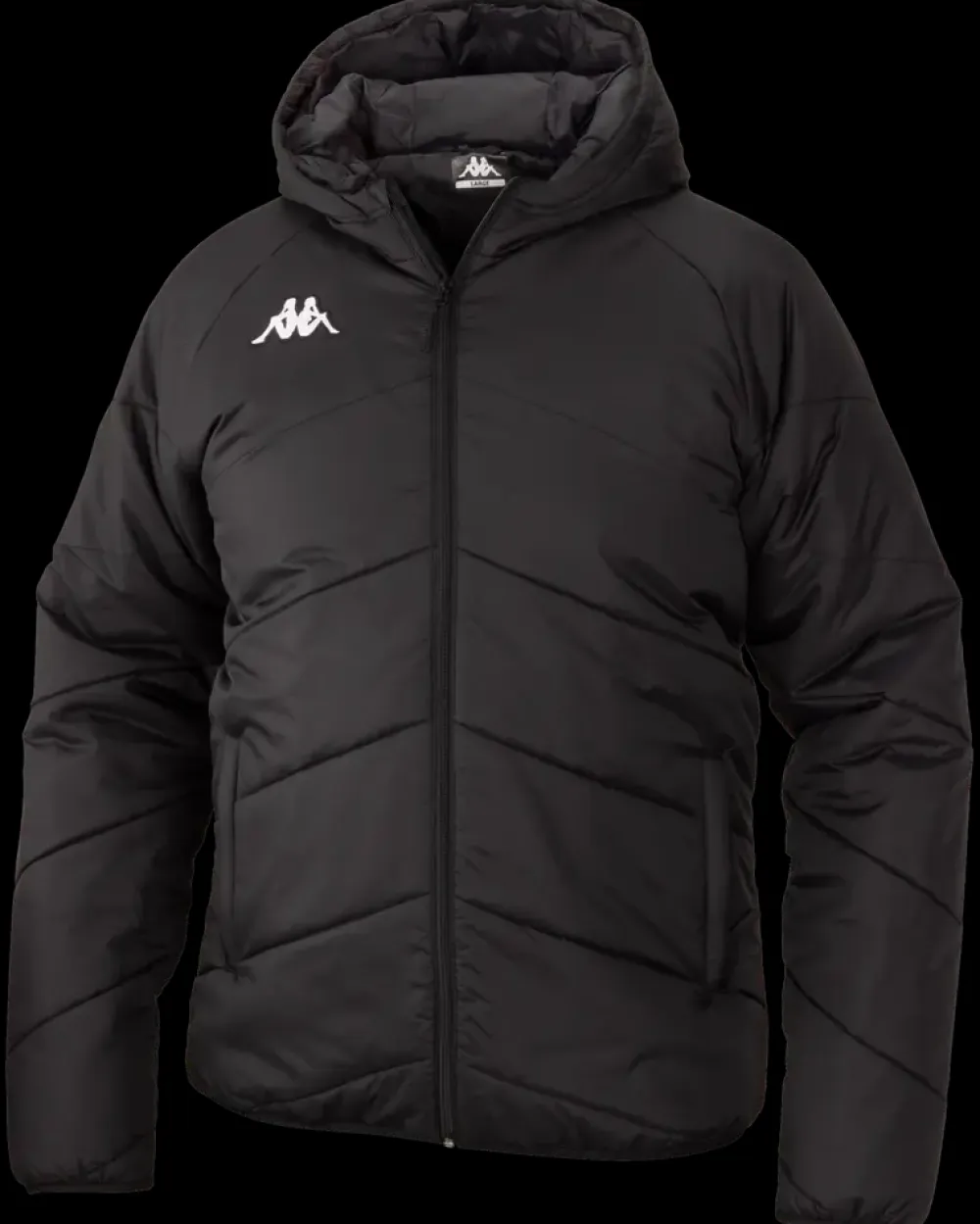 Vatteret vinterjakke med hætte til mænd. Velegnet til fritid, arbejde og sport. Jakken har et vandafvisende ydermateriale, som beskytter i vådt vejr. Udstyret med gennemgående lynlås og to sidelommer med lynlås til sikker opbevaring af småting. Hætte med vattering og elastiske manchetter sikrer en behagelig pasform og god varmeisolering. Broderet Kappa-logo på brystet giver et klassisk sportspræg.Materiale: Yderstof af 100 % nylon. Foring af 100 % polyester.