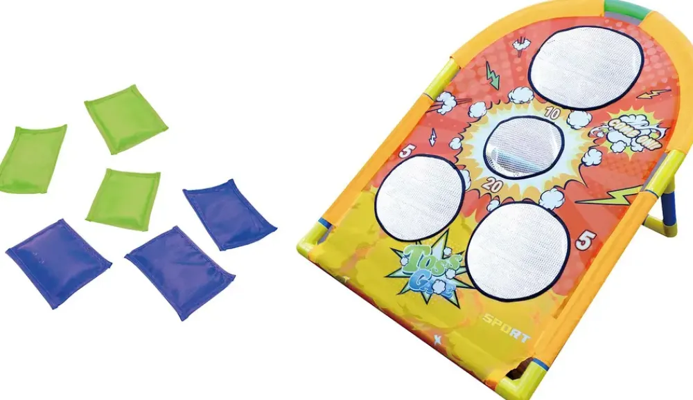 Sjovt spil for hele familien, der udfordrer koncentrationen og motorikken. Kast sandsækkene i hullerne og se hvem der får flest point. Ikke egnet for børn under 3 år.Fare for kvælning – produktet indeholder små dele, og er ikke egnet til børn under tre år.