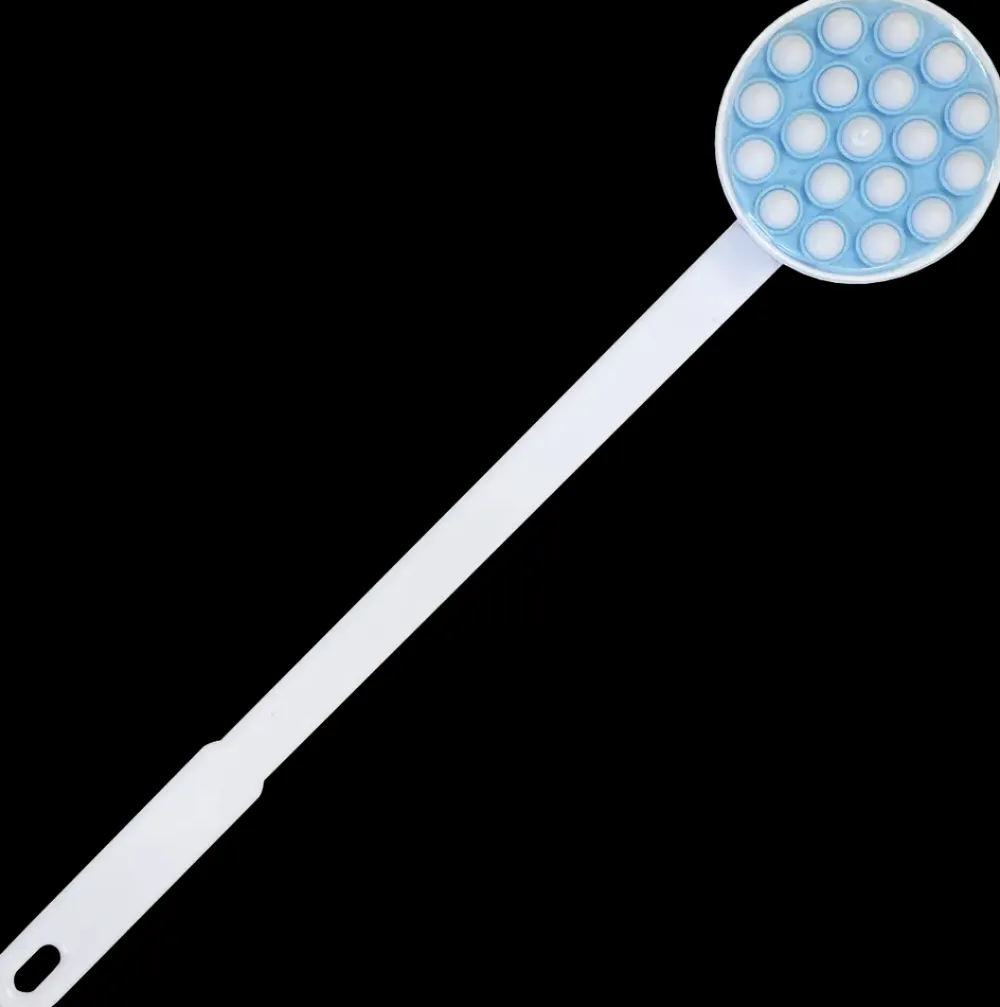 Lotion- og sæbepåføren er velegnet til sæbe, lotion og kropsolier.Den hjælper med at påføre sæbe og lignende på de svært tilgængelige steder på kroppen.Den har et 45 cm langt ergonomisk skaft for nem påføring.Kuglerne på hovedet er med til at give en behagelig massage, samtidig med at sæbe, lotion m.m. påføres.Den er nem at holde ren med varmt vand og sæbe samt ved hjælp af det medfølgende låg.