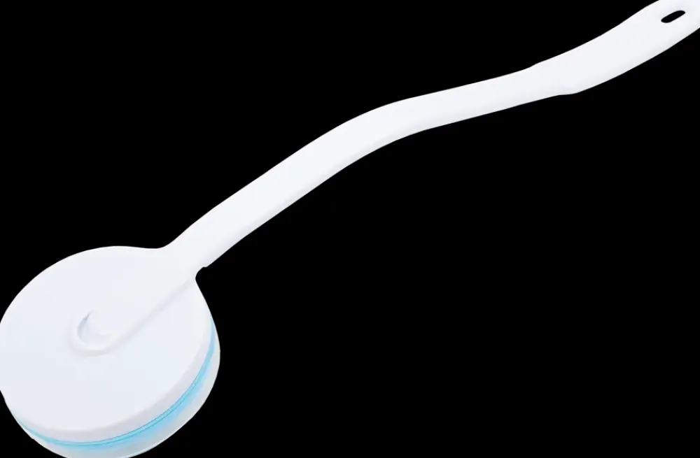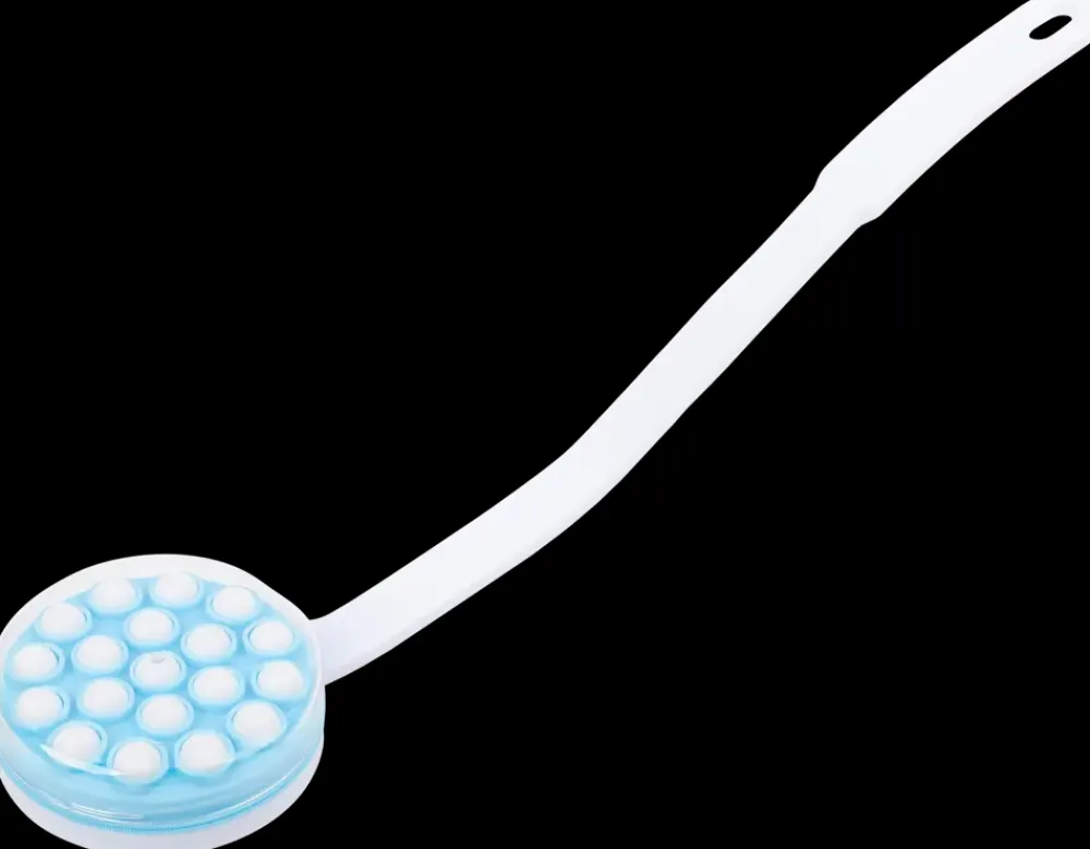 Lotion- og sæbepåføreren er udviklet til nem påføring af sæbe, lotion og kropsolier på hele kroppen – også de svært tilgængelige områder. Produktet har et 45 cm langt ergonomisk skaft, som giver et godt greb og gør det lettere at nå ryggen og andre områder.Hovedet er udstyret med massagekugler, som fordeler sæben eller lotion jævnt, samtidig med at de giver en behagelig massage. Påføreren kan fyldes med sæbe eller lotion under låget, hvilket gør den praktisk og nem at anvende.Efter brug kan produktet rengøres med varmt vand og sæbe, så det altid er hygiejnisk og klar til næste anvendelse.Farve: hvid og blå.Materiale: PP og PS.Mål: ca. 110 x 38 x 395 mm.