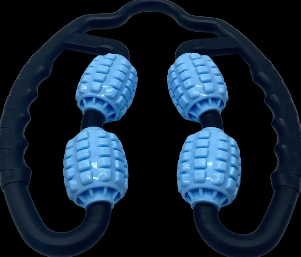 Denne massagerulle er til muskler, fremskynder restitution af ømme muskelsmerter og kramper.De 4 ruller har trykpunkter og 360° rotation virker genopbyggende og afslappende.God til ben, arme, nakke med mere.Kugle: 4,5 cm.